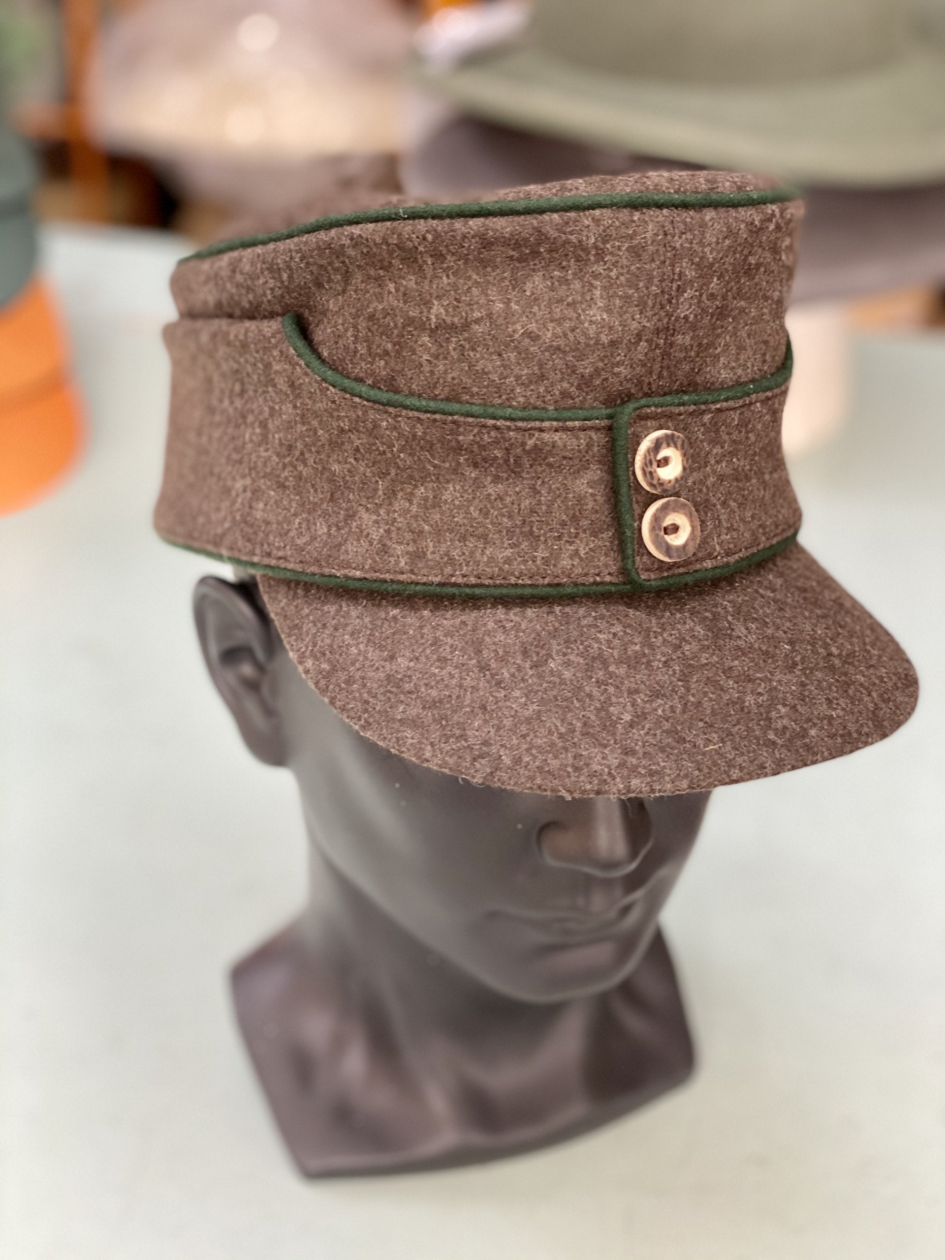 Robuste Wolle trifft auf klassische Klappensysteme: Ohrenschutz, steifer Schirm, echtes Lederband – alles maßgefertigt in Köln. Witterungsfest, komfortabel und langlebig. In zahlreichen Größen und Farben erhältlich – für ambitionierte Jäger, Förster oder Outdoor-Profis.